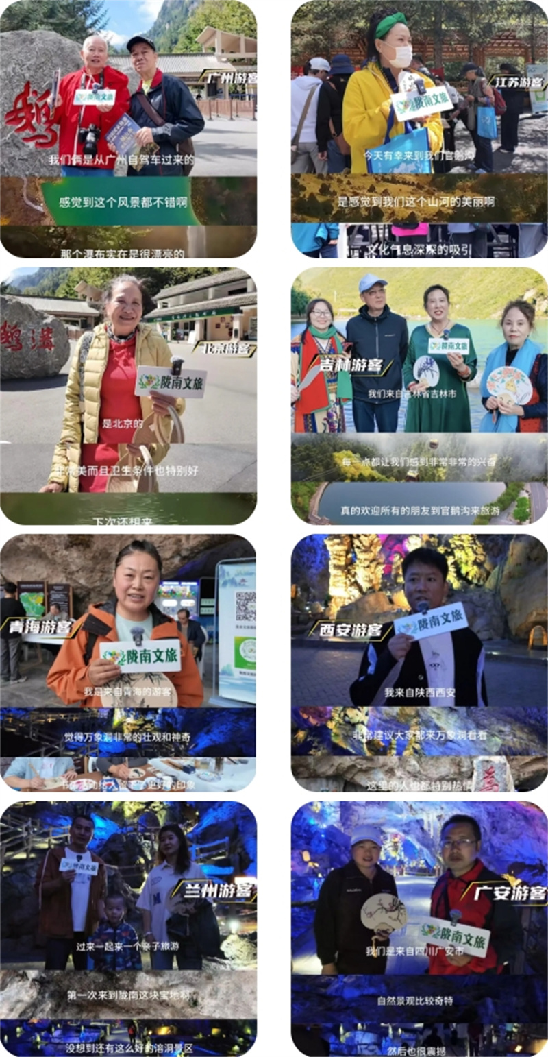 活动现场,市文广旅局工作人员向游客发放陇南文旅地图、宣传册等,介绍陇南的精品旅游线路,推荐特色美食,帮助他们更加清晰的规划行程,并且聆听来自广东、江苏、北京、山西、吉林、重庆、四川、青海、陕西、兰州等全国各地的游客在陇南的所见所感,记录下一个个温暖的“心动瞬间”——他们有人沉醉于官鹅沟的湖光山色、惊叹于万象洞的地质奇观,也有人青睐陇南文化的独特魅力、难忘陇南人民的淳朴热情。
