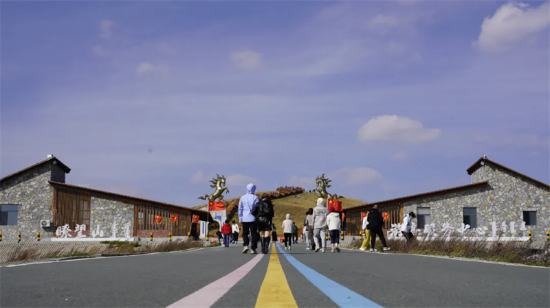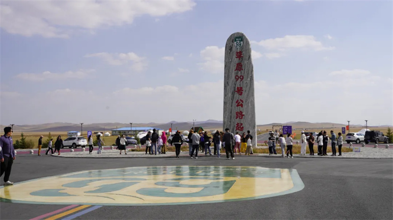 99号公路起点广场,早已聚集了来自全国各地的游客。大家举着相机、手机,在刻有“草原99号公路起点”标识的景观前驻足打卡,期待以这场“长长久久的旅途开端”,开启草原之行。