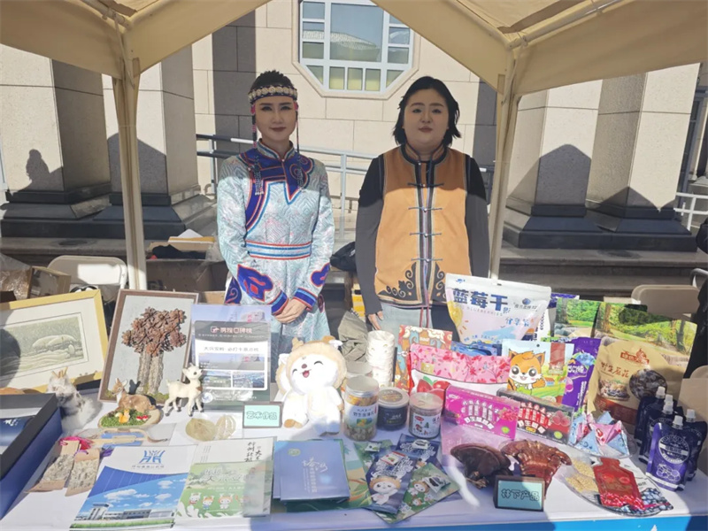 一旁的特产品尝区同样排起长队,酸甜可口的蓝莓果干、咸香酥脆的偃松仁,让味蕾先一步开启兴安之旅。