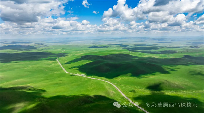 看,它也是锡林郭勒草原风景路,似一条被苍天赋予了神力的灵动画笔,在蓝天白云之下、广袤绿野之间,勾勒出一幅幅如梦如幻的草原胜景。晨曦间,露珠在草叶上辗转闪烁,仿若细碎钻石,诗意在每一片被霞光染透的草叶间潺潺流淌;暮色里,牛羊归圈的剪影映衬着余晖,勾勒出宁静祥和的画面,让旅人沉醉不知归路。它位于锡林郭勒千里草原风景大道最亮丽地段,那片如绿宝石般璀璨的西乌珠穆沁旗,以其独有的游牧风情,成为草原画卷中最为浓墨重彩的一笔。