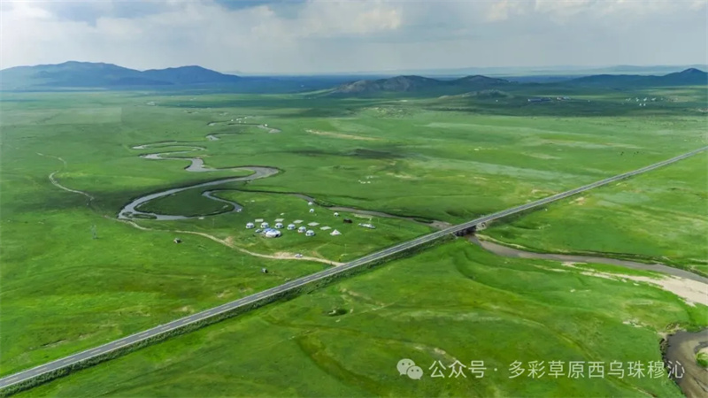 看,它还是中国北疆打卡路,宛如自苍穹坠落凡间的明媚星宿,稳健伫立在北疆之旅波澜壮阔的原野上,成为旅人心中魂牵梦绕、心之所向的精神地标。它所在的这片草原,是祖国北疆、首都正北最亮丽的明珠——西乌珠穆沁旗。湛蓝天空下,洁白的蒙古包错落有致,骏马奔腾如疾风,牧人长调悠扬似天籁,西乌旗草原“99号公路”贯穿其中,承载着旅人对北疆的一切向往,定格无数美好瞬间,使之成为无数旅人社交媒体上闪耀的打卡圣地。
