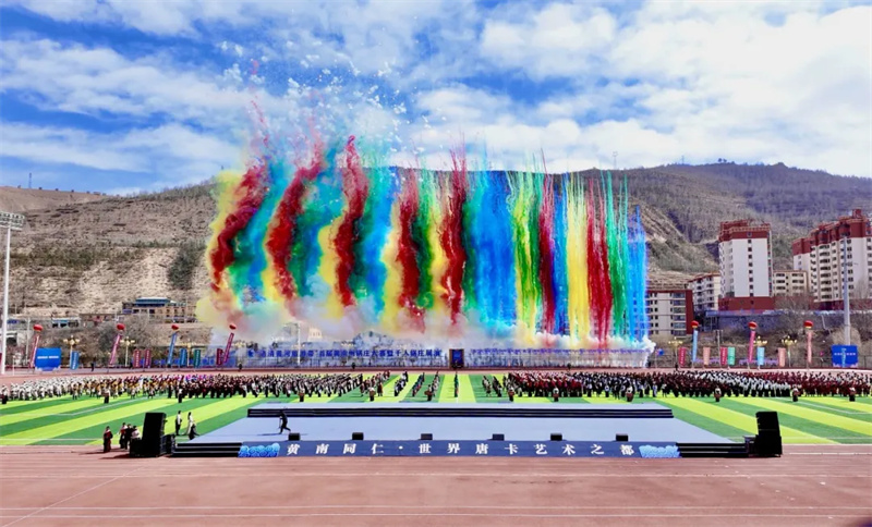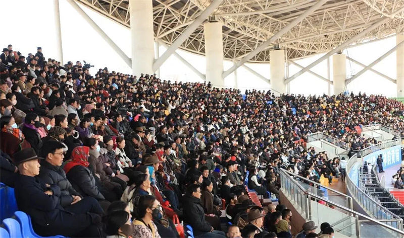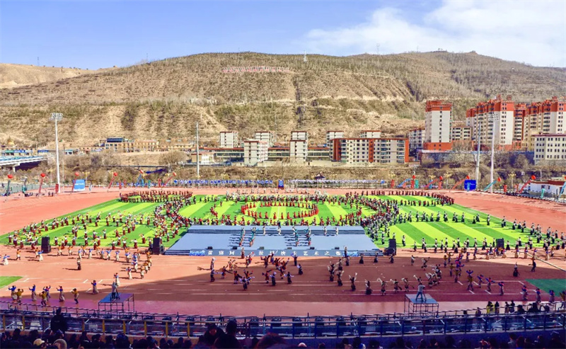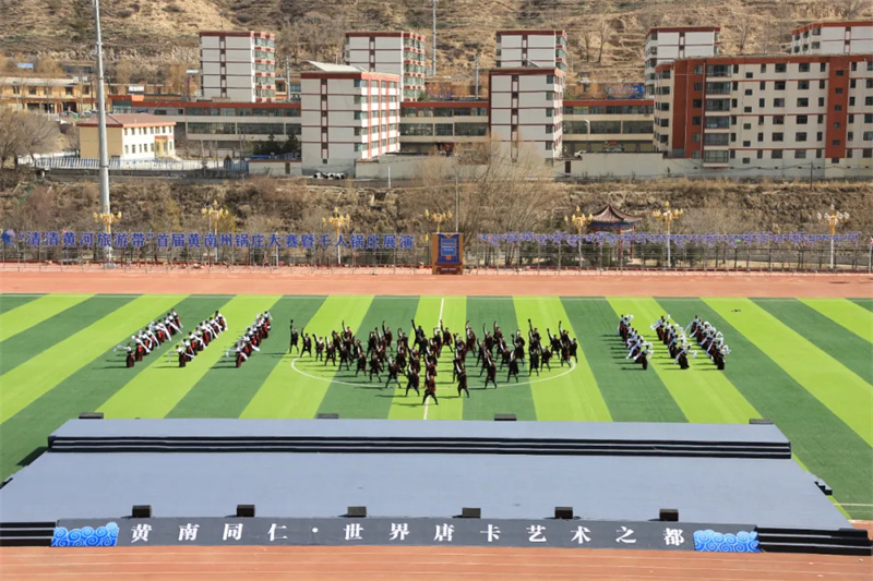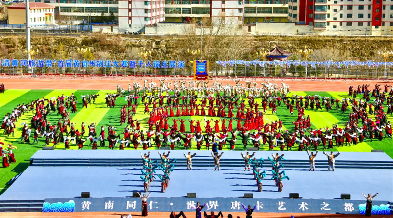 3月3日,“清清黄河”旅游带首届黄南州锅庄大赛暨千人锅庄展演在州体育场激情上演。来自黄南州州直及一市三县锅庄队和诚邀的西藏那曲、青海玉树、湟中区等地的多支锅庄竞赛及展演代表队齐聚一堂,身着绚丽多彩的民族服饰,以豪迈灵动的舞姿,共赴一场非遗文化传承与民族团结进步的盛宴。