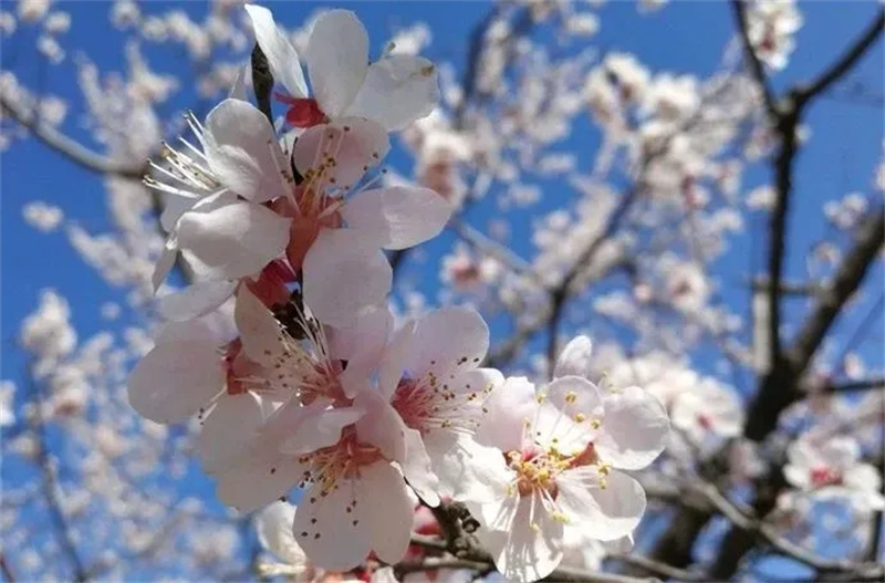花海随便拍:粉白杏花连成片,风吹花瓣的粉色花雨,穿裙子、带相机,随手一拍都是朋友圈爆款;