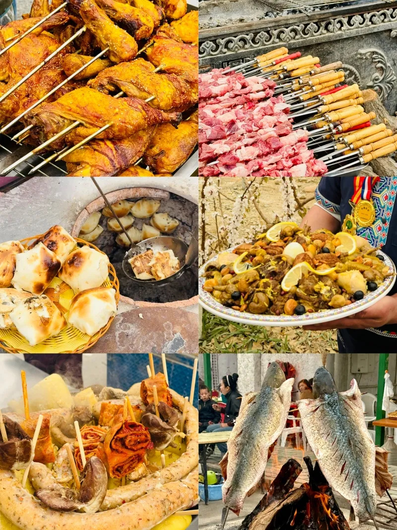 美食管够吃:美食长廊有烤全羊、烤羊肉串、大盘鸡、烤包子、手抓饭等农家菜新鲜实在,边看花边解馋;