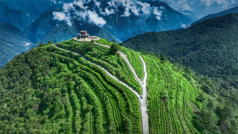 这里距墨脱县城不远,每年春天,整个山岭都弥漫着新芽吐露的清鲜气息。站在茶园里,一边是层叠的茶垄,一边是远方的墨脱县城,若是登上拉贡塔,还能望见雅鲁藏布江蜿蜒而过——城市与山河,在这里刚好同框。