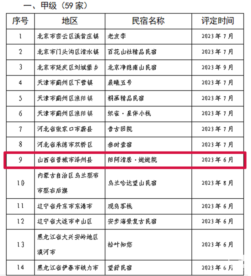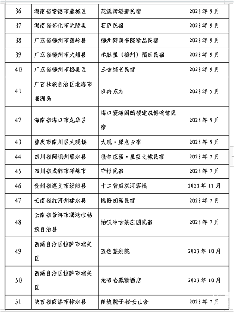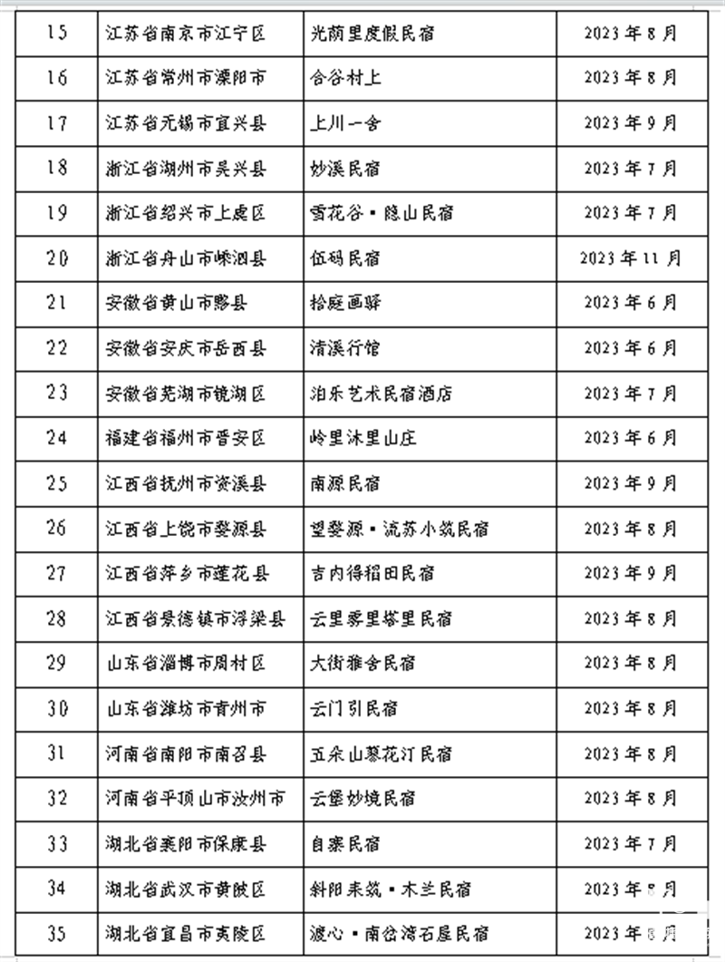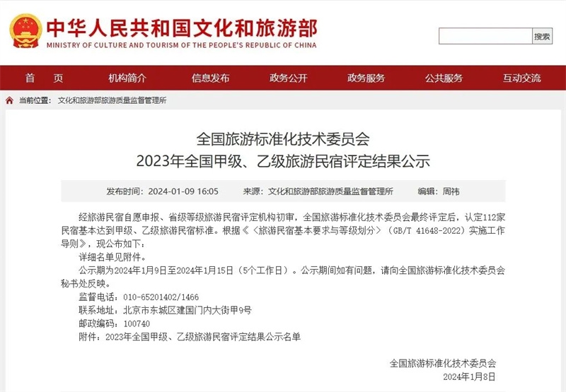 2023年全国甲级、乙级旅游民宿评定结果公示名单