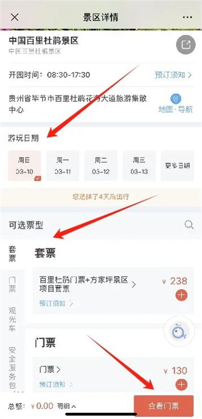 游客朋友可通过打开微信搜索“百里杜鹃公众号”并关注、“百里杜鹃风景名胜区”官方抖音号、一码游贵州等各大线上OTA平台进行线上预约购票,入园时请带好本人有效身份证件。