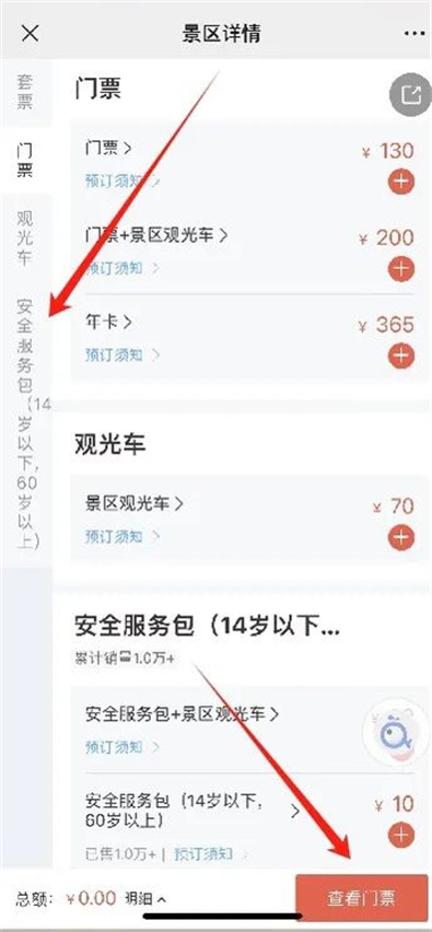 2.为有效保障游客人身安全,免门票群体需购买10元的安全服务包。