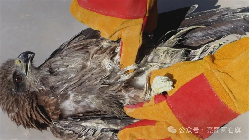 近日,一只受伤的国家一级保护动物金雕被当地居民发现并及时报警,内蒙古巴丹吉林荒漠生态系统定位观测研究站工作人员把金雕带回救助中心进行检查和治疗。经过不懈努力,这只金雕已完全恢复健康,具备野外生存能力,已顺利放归大自然。