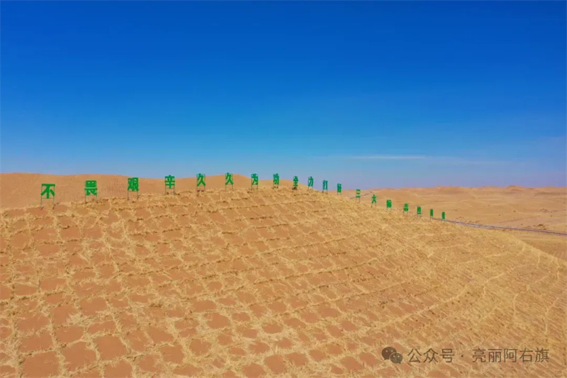 阿拉善右旗始终把保护和建设生态作为最大政治任务,统筹山水林田湖草沙一体化保护和系统治理,2025年三北六期项目总任务90.3万亩,年度投资达到7.7亿元,截至8月25日,完成68.4万亩,其中:人工种草总面积56.1万亩,完成34.2万亩;工程固沙总面积29.9万亩,完成29.9万亩;封沙育林4.3万亩,完成4.3万亩。