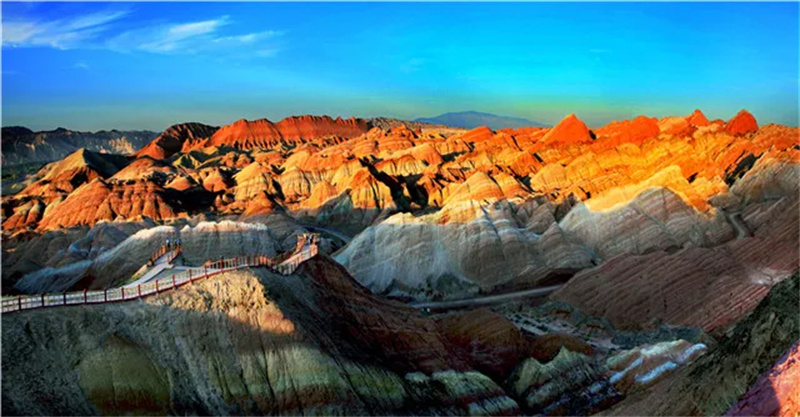 张掖丹霞地貌地质公园位于甘肃省河西走廊中段,是中国丹霞地貌的典型代表,也是世界地质公园的重要组成部分。这里被誉为“上帝打翻的调色盘”,数百万年的地质演变,塑造出层理交错、色彩斑斓的岩层景观。紫红、翠绿、橙黄、灰白……一道道山峦如泼墨挥毫,在阳光下熠熠生辉,展现出大自然鬼斧神工的创造力。