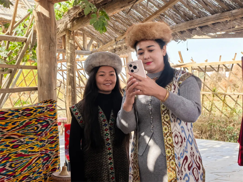 福建省游客周成轩说:听着这个乐器,感觉特别能体现当地特色,巴楚的旅游氛围也非常好。”