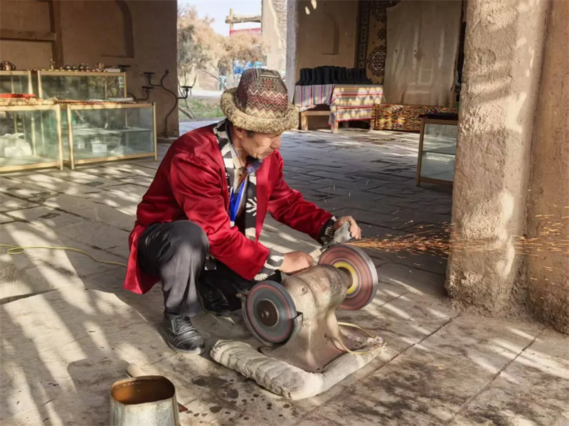 活动期间,红海景区中央部落的非物质文化遗产展示展演区吸引大量游客驻足。土陶匠人指尖飞舞,揉捏、拉坯、修形,古朴陶坯逐渐成形;打铁铺中火花飞溅,铁锤与铁砧的碰撞声奏响了千年手工艺的乐章;毡靴制作展台前,传承人飞针走线,将羊毛的柔软与游牧文化的坚韧完美融合;卡龙琴的悠扬乐声萦绕耳畔,传递着传统音乐的深情与韵味。