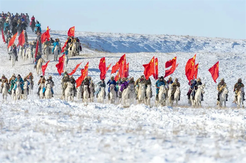 当冬季来临,锡林郭勒草原披上了一层洁白的银装,变成了一个梦幻的冰雪世界。在这里,你可以参加那达慕大会,感受蒙古族传统体育项目的魅力,观看赛马、摔跤、射箭等精彩表演,仿佛置身于一场热闹的草原盛会。还可以乘坐雪橇,在雪地上飞驰,感受速度与激情;或者走进蒙古包,品尝地道的蒙古美食,与热情的牧民们一起载歌载舞,体验纯正的草原生活。