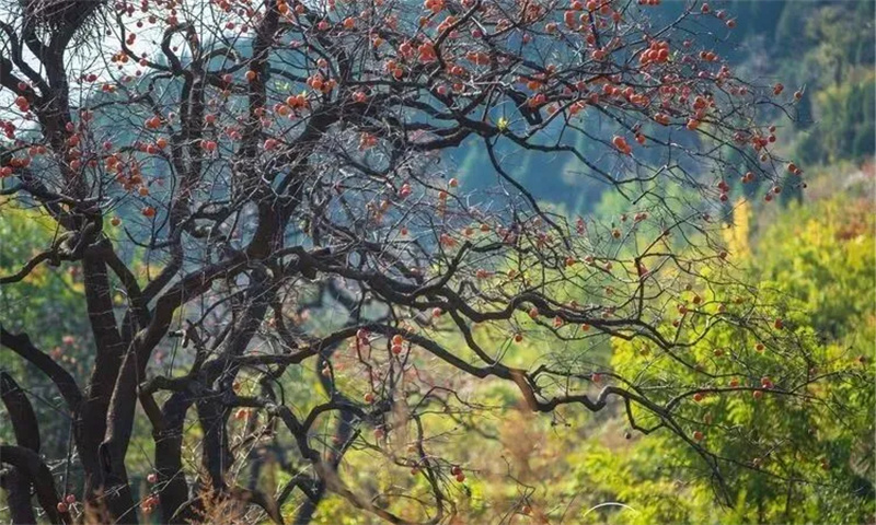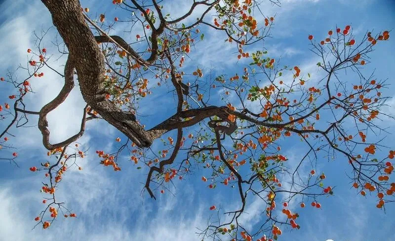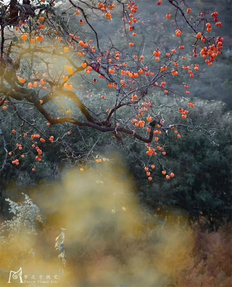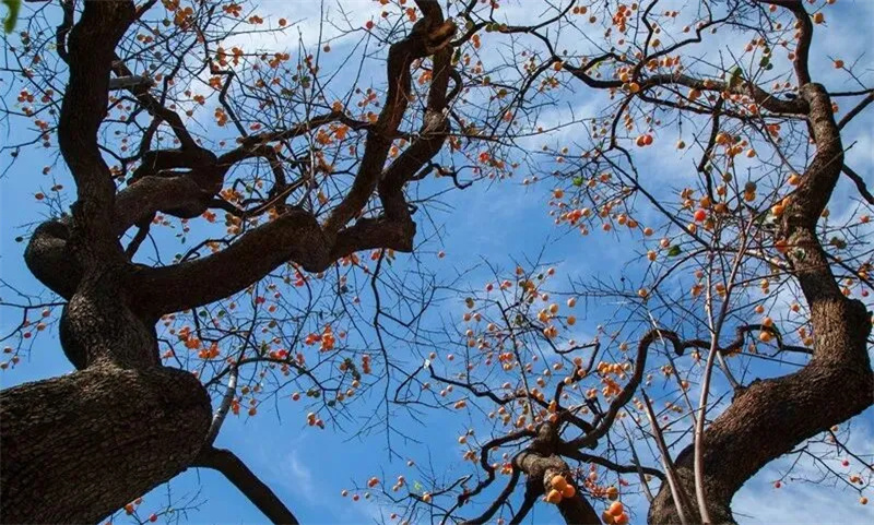 眼前一树树红红的柿子,如灯笼似的挂满树枝,殷实而沉淀,它不动声色地惊艳着最朴实的深秋。