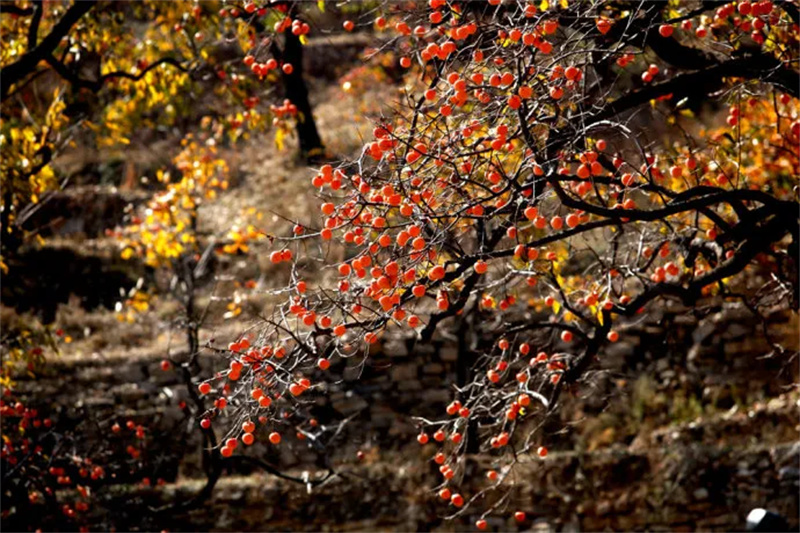 青州有着悠久的柿子种植历史,正值霜降时节,田野里、山坡上、房前屋后,漫山遍野的柿子树硕果累累,层林尽染,仿佛挂上了一串串喜庆的红灯笼,把乡野山村装扮得分外妖娆。