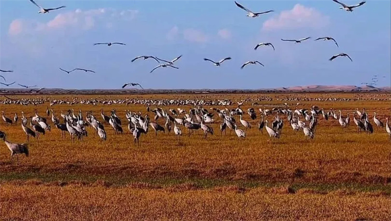 阿拉善盟位于全球候鸟迁徙路线的重要节点,是东亚-澳大利西亚候鸟迁徙路线的关键驿站。丰富的食物资源、安全的栖息环境、适宜的气候条件为候鸟提供了不可或缺的生存条件。每年此时,大批候鸟如约而至,为接下来的旅程积蓄能量,让这片土地成为秋日里最富生机的自然剧场。