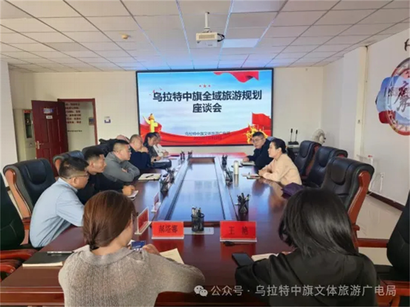10月22日,乌拉特中旗文体旅游广电局组织召开了全域旅游规划座谈会。会议由文体旅游广电局党组书记、局长史龙龙同志主持,北京颐和文旅旅游规划专家、旅游服务中心负责人、项目办全体干部参加了会议。会议从乌拉特中旗旅游资源的整合与开发路径、打造独具地方特色的旅游品牌等方面进行了详细解读与策划。