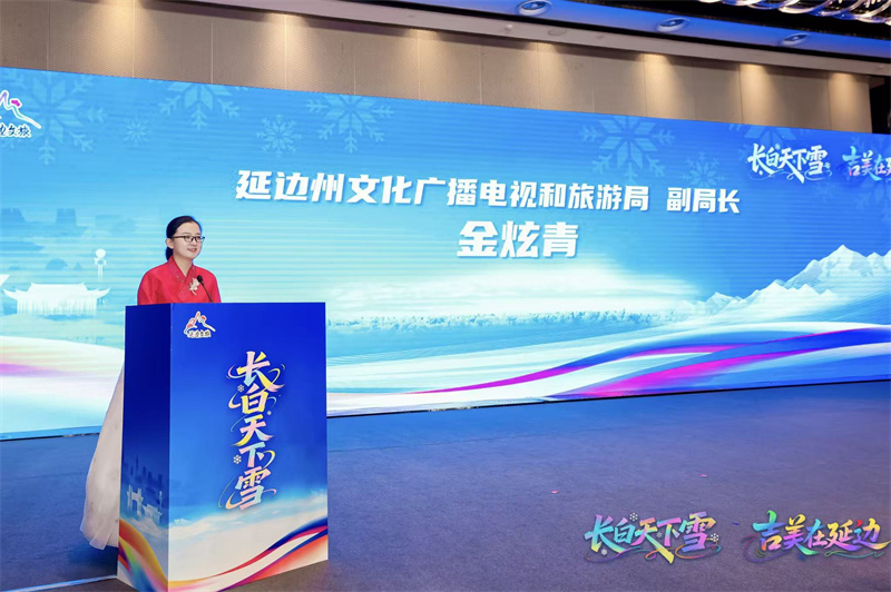 延边州文化广播电视和旅游局副局长金炫青在致辞中传递出满满的诚意与期待:宣告延边机场已正式复航,为两地架起“空中快速通道”,让“说走就走的冰雪之旅”成为现实;并详解延边精心打造的冰雪产品,邀请北京朋友在粉雪间寻觅乐趣、在民俗中感受温度,字里行间皆是深化合作、共促发展的决心。