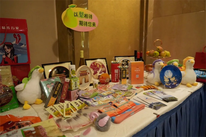 会场外,库尔勒市设置特产与文创产品展区,香梨深加工产品、民族手工艺品、特色文创等精美的商品集中亮相,让参会代表在了解旅游资源的同时,直观感受库尔勒地域文化与产业特色,成为推介会上一道亮丽的风景线。