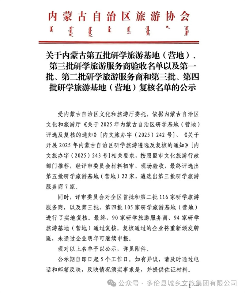 当初雪为多伦湖披上银装,喜讯重磅来袭——多伦湖景区研学旅游基地(营地)顺利通过官方复核。此次复核通过,是对多伦湖景区研学体系专业性、安全性、教育性的再次肯定。