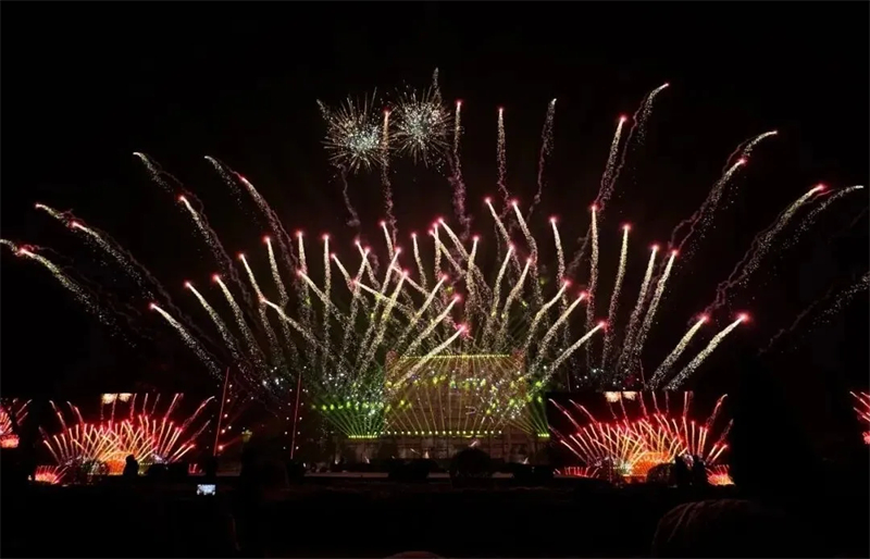 万发烟花腾空而起、直冲云霄,在夜空次第盛开,姹紫嫣红、流光溢彩。随后,一架架无人机腾空而起,在夜空中不断变换阵型,依次组成“科左后旗”“英雄上马的地方”“福袋”等字样和图案,科技感十足、震撼人心,将科左后旗的夜空装点得如梦似幻,照亮了万家团圆的幸福笑脸。