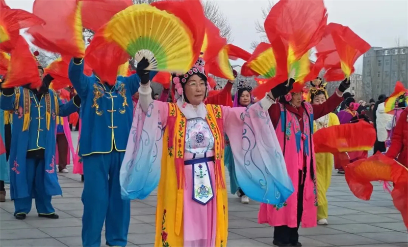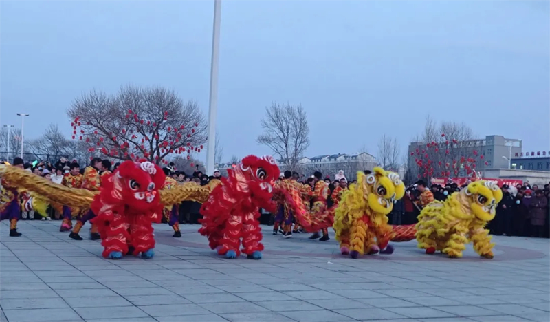 活动现场,人流涌动,热闹非凡。伴随着欢快的鼓点,身着艳丽服饰的秧歌队员们舞步轻盈、红绸翻飞,每一个动作都充满了喜庆与活力。紧随其后的舞龙舞狮表演气势昂扬,金龙腾跃、雄狮起舞,辗转腾挪间尽显精气神。热闹的节奏和欢快的舞步,让现场观众沉浸在浓郁的民俗文化氛围中。