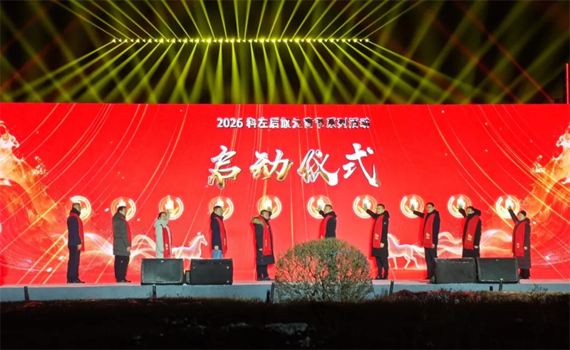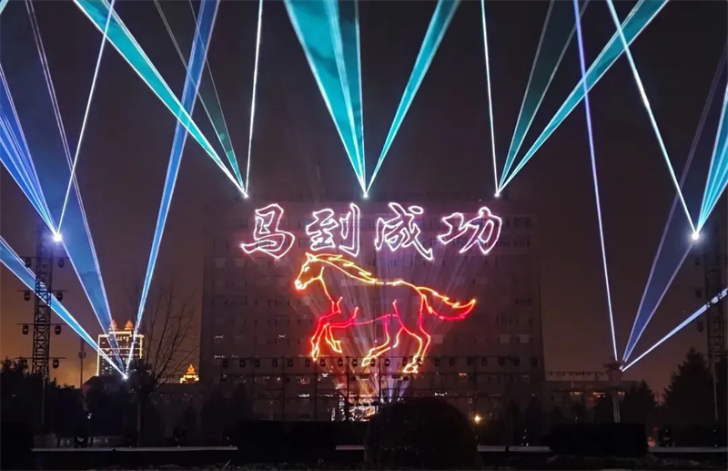 夜幕降临,华灯初上,2026科左后旗元宵节活动正式启动。舞台上,歌曲、舞蹈、舞龙舞狮等节目轮番上演,精彩纷呈;随着音乐响起,绚丽的激光束在夜空中勾勒出“一马当先”“万马奔腾”“悦来通辽·遇见后旗”等图案,光影交错、美轮美奂,将节日的欢乐气氛推向顶峰。