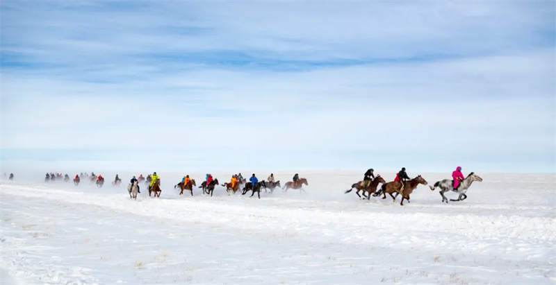 千马驰雪、骆驼巡游、雪地竞技、跨年烟火,冷冽的天气挡不住冰雪那达慕的澎湃激情。