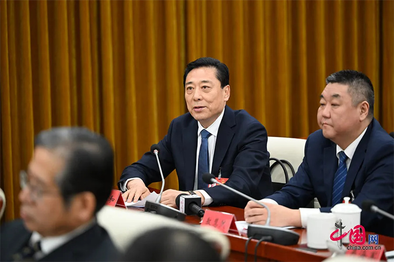 全国人大代表、内蒙古自治区兴安盟委书记苏和在十四届全国人大四次会议分组会议上发言(摄影:韩卿立)