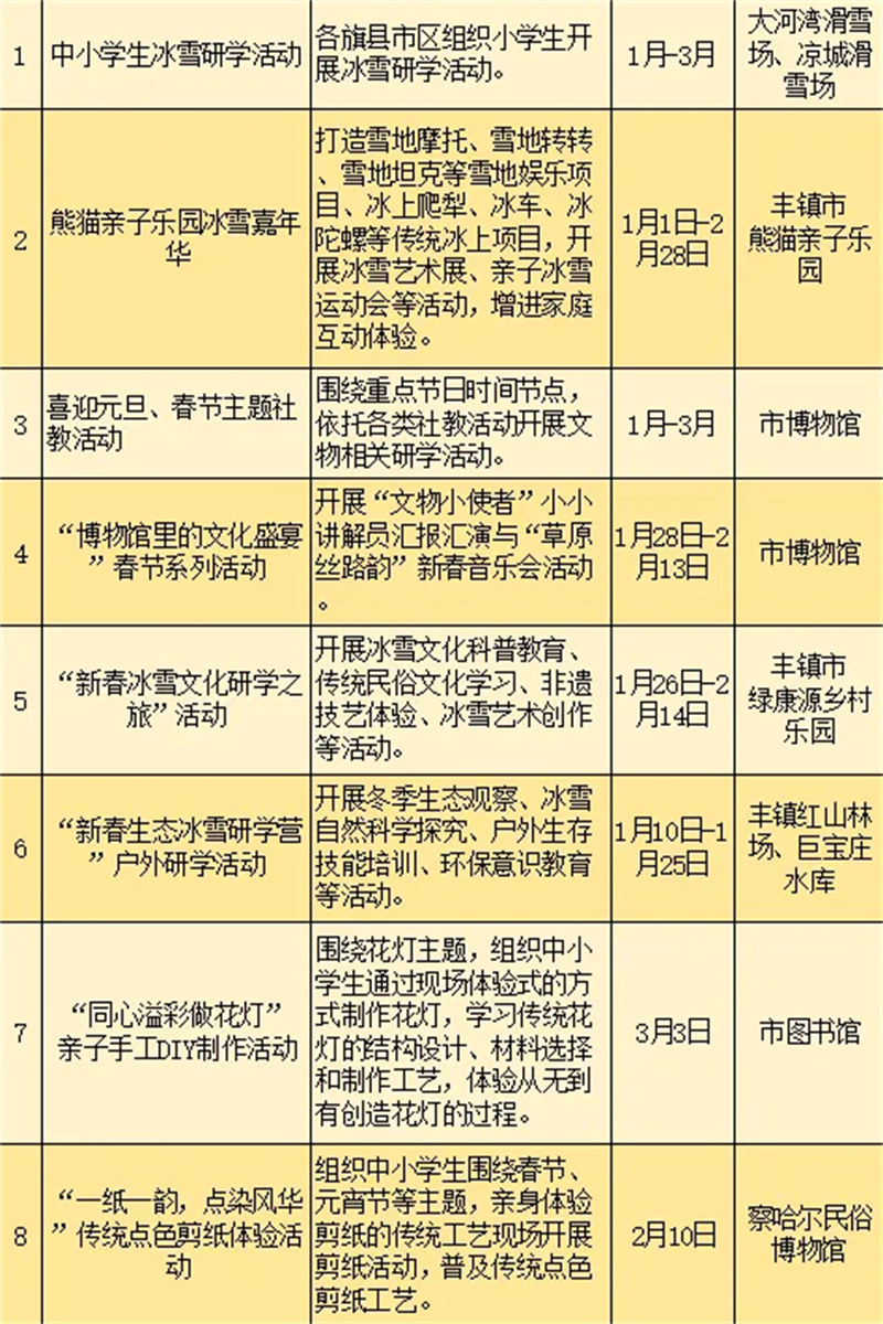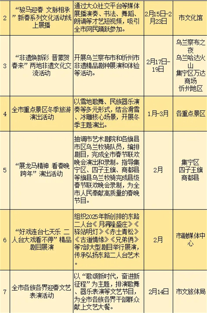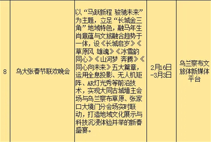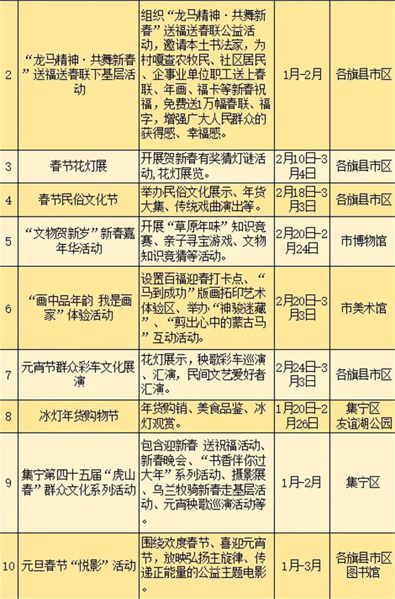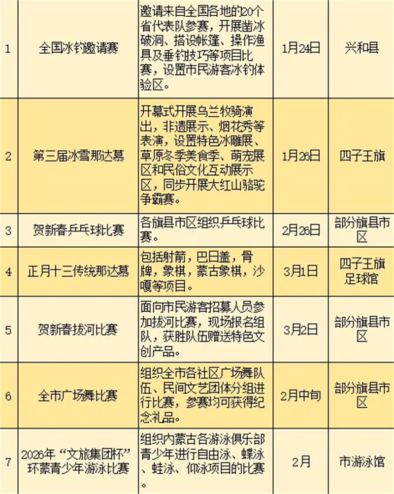 新春将至,年味渐浓!甲辰岁末迎新岁,丙午马年启新程,乌兰察布市正式推出冬季“十类百项”文化旅游体育活动!冰雪逐趣、民俗闹春、运动燃情、年味飘香,十大类别百项精彩活动齐聚乌兰察布,将草原的冬日浪漫与新春的团圆喜庆深度融合,邀您共赴一场有温度、有乐趣、有年味的冬日之约,在乌兰察布邂逅别样冬日美好,欢度热闹祥和的马年新春!