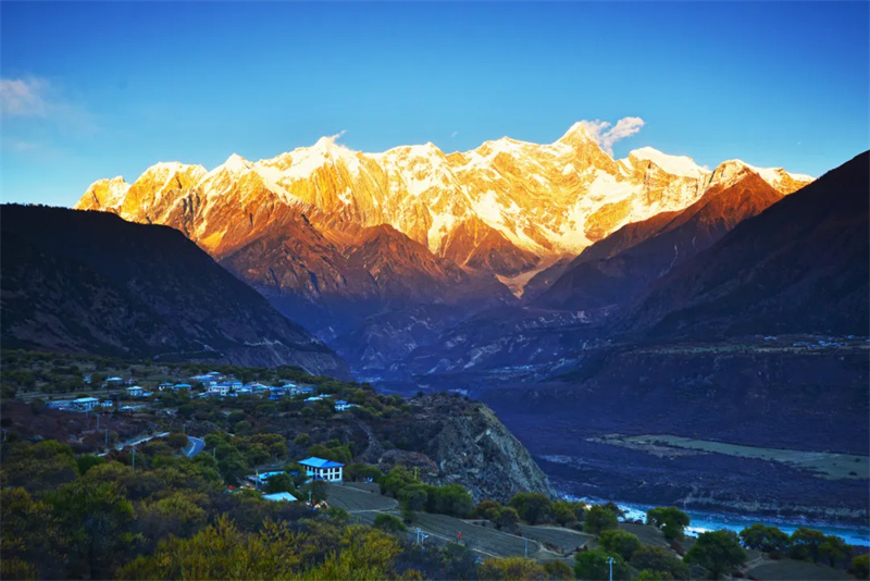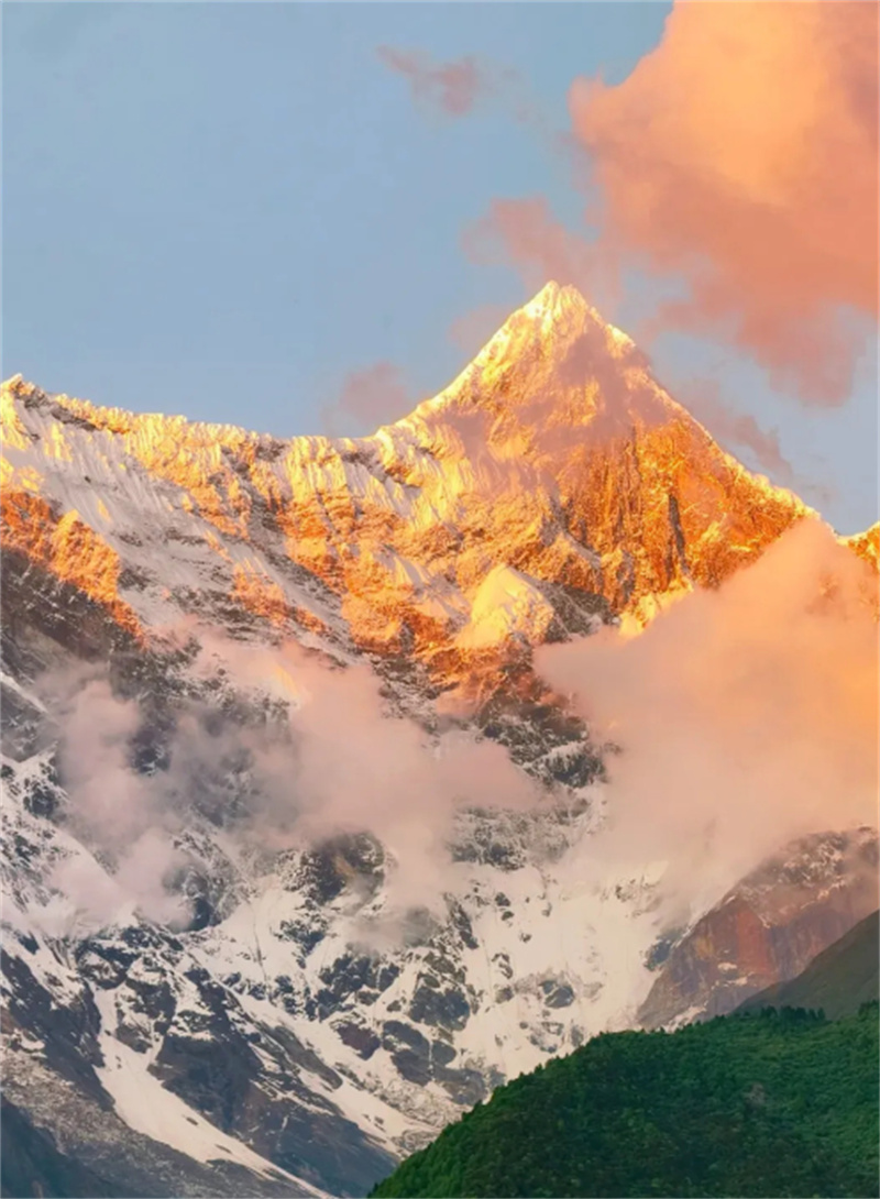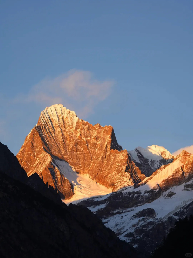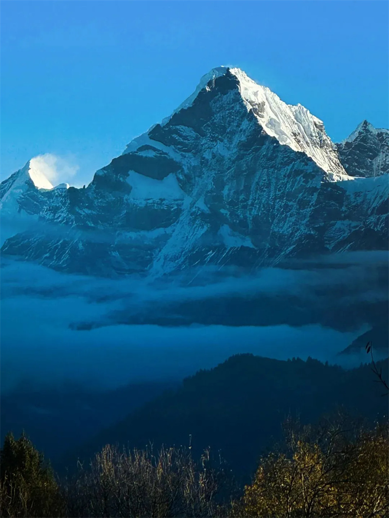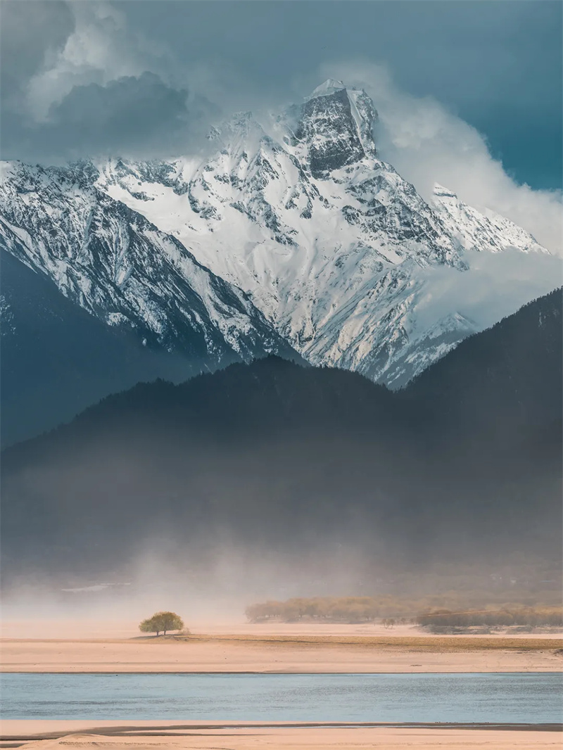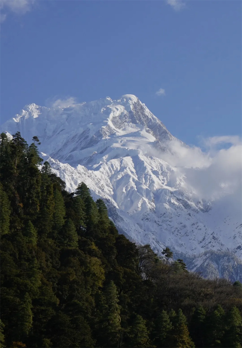 它是南迦巴瓦九峰之一,终年积雪覆盖,云雾缭绕时如隐世仙境,晴空之下则尽显巍峨冷峻。