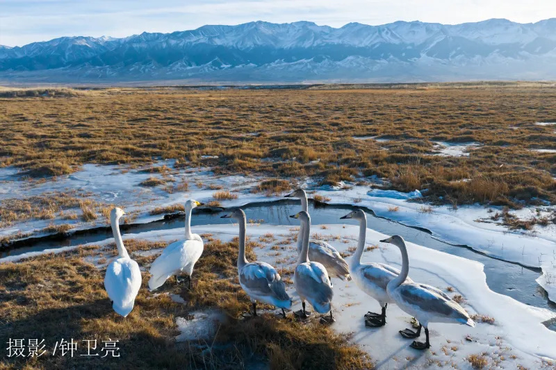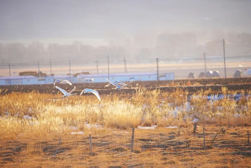 从“零星过客”到“越冬常客”,候鸟的选择是生态的答卷。近年来,巴里坤通过湿地补水、植被复种等举措,让高家湖的湿地面积越来越大,水生植物覆盖率达80%。如今,绿头鸭的“嘎嘎”叫声被风裹着会传出半里地,大天鹅的鸣叫声清晰的像冰棱相碰,这些生灵的欢闹,成了冬日巴里坤最生动的“生态旁白”。