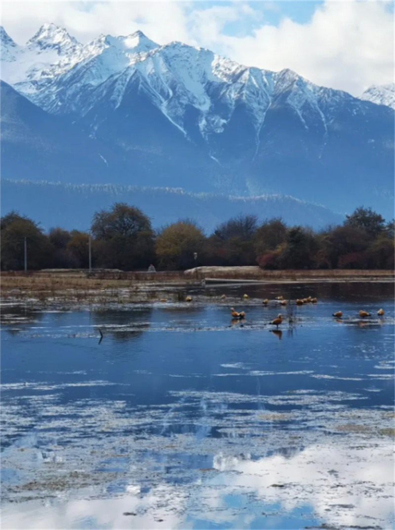作为青藏高原最美河流之一的尼洋河,受印度洋暖流与北方寒流的影响,多种气候带并存,有着广阔的三角洲湿地。