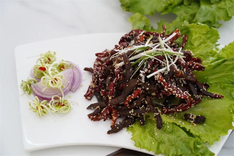 祁连县拥有“天然牧场”的生态优势,为牛羊提供无污染的生长环境。祁连牛羊肉富含18种氨基酸及钙、磷、铁等矿物质,不仅肉质优良,还富含高蛋白、低脂肪等多种营养成分,肉质细嫩、无膻味。这些优势使祁连牛羊成为兼具生态价值与营养价值的高端畜产品,远销澳门并入选全国十大美味羊肉排行榜。此次活动多种菜品选用当地牛羊肉为食材,做法不一、口感独特,受到了现场观众的一致好评。
