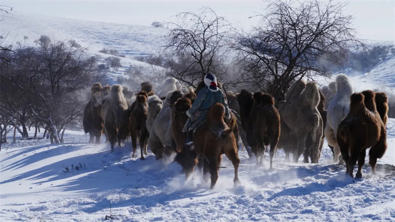 参赛作品以多样的艺术视角,生动呈现了西乌草原上的骆驼群像——既有风雪中昂首跋涉的坚毅身影,也有赛场上奋力奔腾的激昂瞬间;既有四季轮转中与草原相映成趣的悠然姿态,也有与牧民相伴相依的温暖日常。这些画面通过光影交织,不仅刻画出骆驼作为草原生灵的灵动形象,也展现出西乌珠穆沁旗深厚的游牧文化与和谐生态。