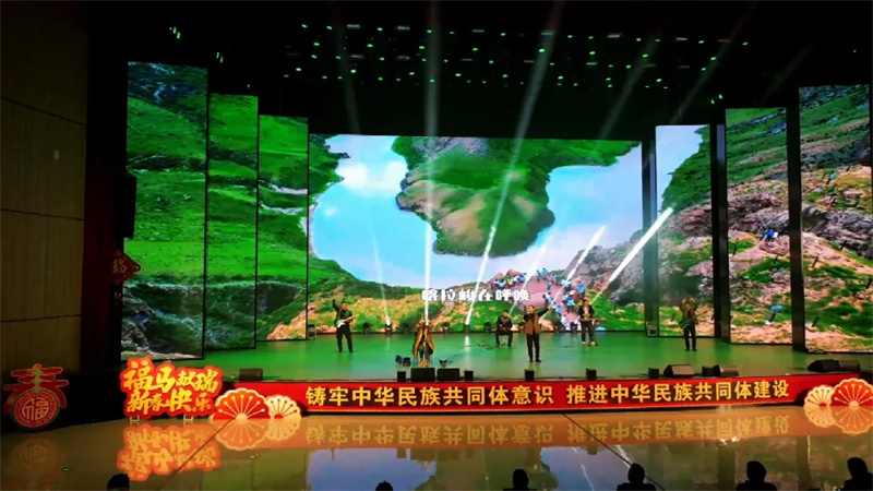 2月9日,特克斯县“骐骥启新程 福满八卦城”马年春节联欢晚会在新落成的县演艺大厅精彩开演,为全县各族群众献上了一席情意浓浓、幸福满满的“文化年夜饭”,处处洋溢着马年团圆祥和的节日气息。