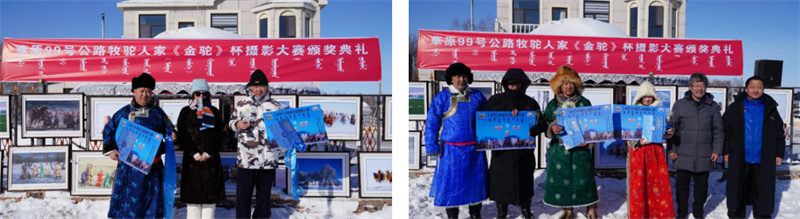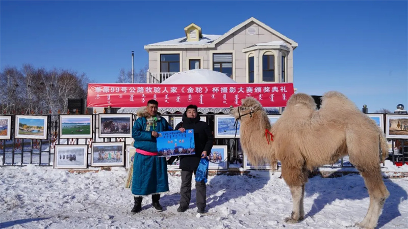 1月18日,西乌珠穆沁旗浩勒图高勒镇乌日图高勒嘎查牧驼人家暖意融融,草原99号公路牧驼人家“金驼”杯摄影大赛颁奖典礼在此举行。来自全国各地的摄影爱好者、主办方代表及嘉宾齐聚一堂,共同见证获奖作品揭晓,分享以镜头捕捉草原驼韵的创作喜悦。