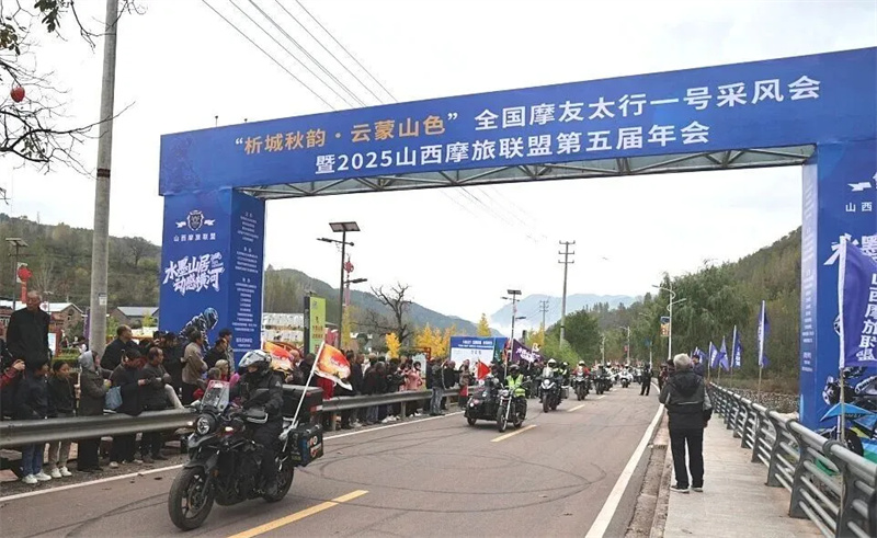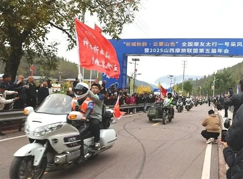 特技表演结束后,近千辆蓄势待发的摩托车组成长龙依次启动,在激昂的音乐与群众的欢呼声中,有序驶向太行一号旅游公路,开启了穿梭于“析城秋韵、云蒙山色”之间的壮美骑行。