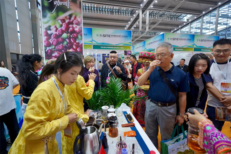 据悉,11月14日至16日在会展中心还开展“旅居云南·就想来昌宁”商品展,来自大湾区的市民朋友纷纷前来6号馆A23展位深度体验来自保山昌宁的“左手咖啡右手茶”的香甜。身着第一批国家级非物质文化遗产——昌宁苗族服饰的演员一轮又一轮的敬茶歌在展馆掀起一波波打卡热潮。众多市民前来展位咨询昌宁旅游、旅居线路及旅行攻略。此外,咖啡、茶叶、有机大米等昌宁农特产品以“舌尖上的美味”吸引广大市民朋友前来购买。