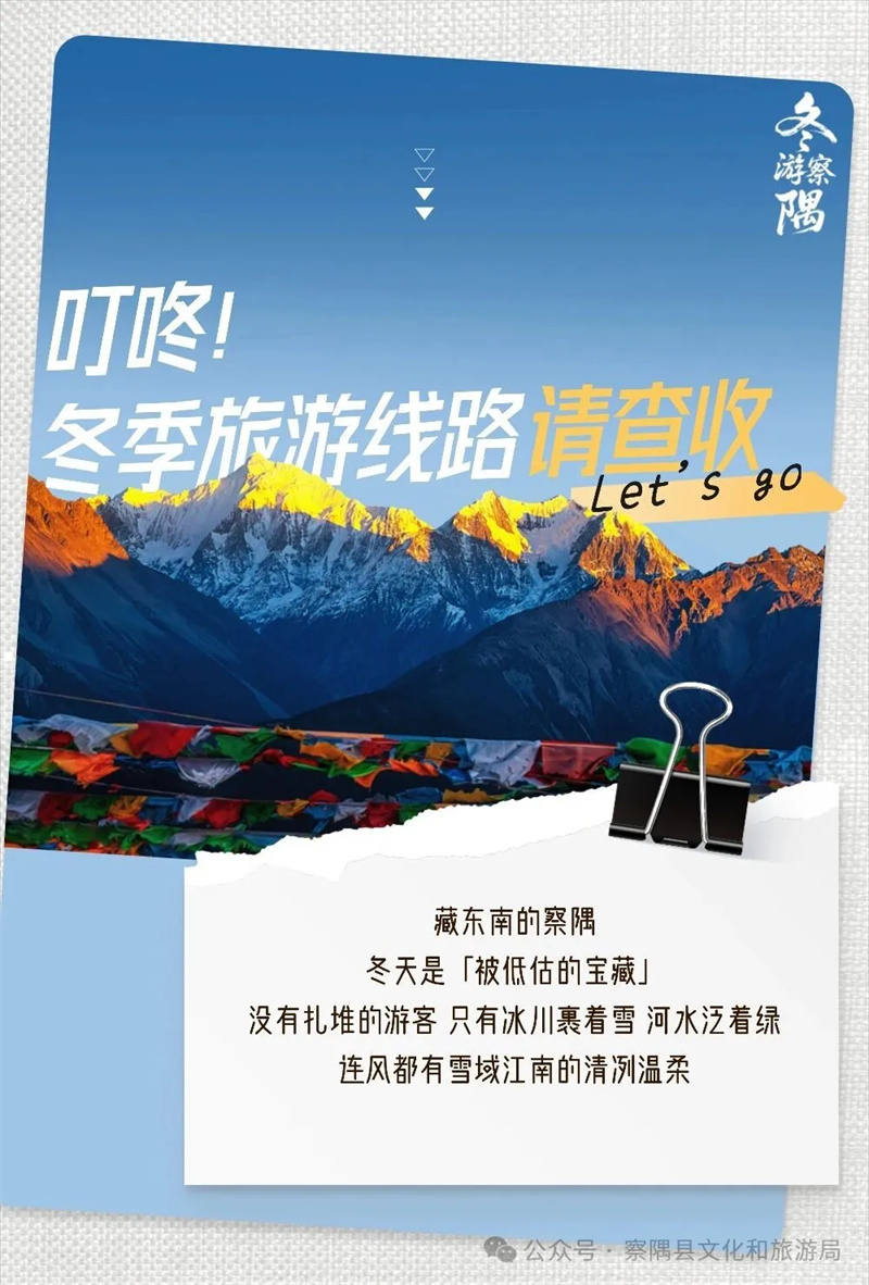 1. 证件:察隅属边境地区,需提前办理边防证,注明“西藏自治区察隅县”,过检查站主动出示