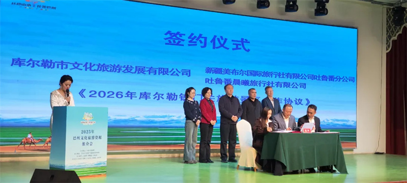 座谈会上,库尔勒市文化旅游发展有限公司负责人李海明介绍了库尔勒市旅游资源,AAAA级天鹅河景区、AAA级铁门关景区以及梨城“拾”景,库尔勒香梨深加工产品和具有梨城特色的文创产品。并与合作企业签订战略合作协议。