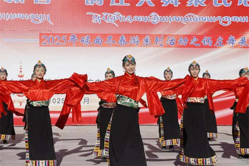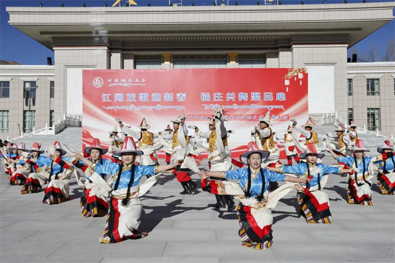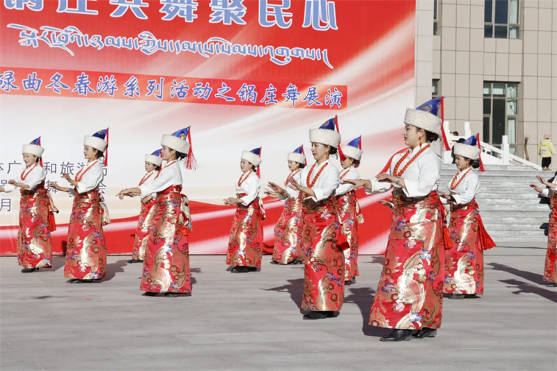 高原冬日,阳光璀璨。为喜迎2026年元旦佳节,进一步丰富广大群众精神文化生活,展示碌曲深厚的民族文化底蕴,推动文旅融合发展。12月29日,碌曲县举行“江河欢歌迎新春 锅庄共舞聚民心”2025年冬春游系列活动之锅庄舞展演活动。来自全县各乡镇、机关单位、兄弟县市的13支锅庄舞队齐聚一堂,以最热情奔放的舞姿,舞出了各族儿女团结奋进、喜迎新年的精神风貌。