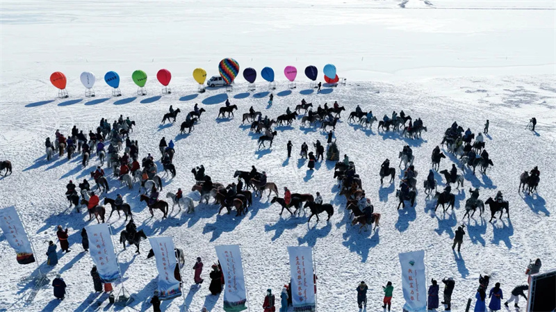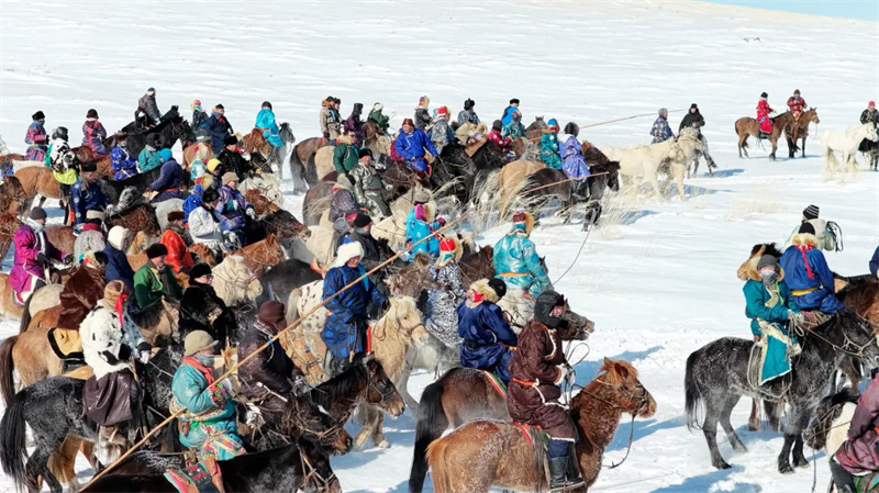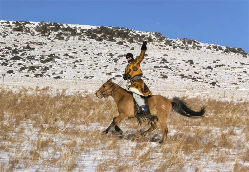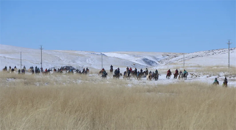 北风呼啸,滴水成冰,一百六十匹蒙古马整装待发,鼻孔喷出的团团白雾伴随着高亢的嘶鸣宣告着速度与荣耀的角逐即将开启。骑手们与骏马浑然一体,成为草原上自由与力量的化身。刹那间,雪原沸腾——马蹄踏起漫天飞雪,在阳光的映照下,气势磅礴,震撼人心。