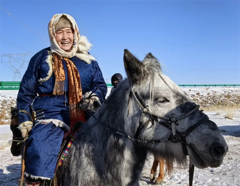 穿越的路线是横跨近40公里的雪原,路途充满挑战,稍有不慎便可能陷蹄滑倒,但蒙古马凭借其天生的耐力与敏锐的感知,在骑手的驾驭下,扬鬃奋蹄、步稳如山,如流动的火焰,所过之处雪浪纷飞,向终点冲锋的激情早已抵消快马颠簸的疲惫,马背上的骑手们在进入终点时,却仍站起身来,挺直脊背,向着早就在终点等候的观众高声呼喊,脸上洋溢着征服严寒与挑战的自豪笑容。