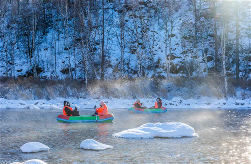 度假区的木屋村落更添几分童话感。原木搭建的房舍覆着蓬松的积雪,屋檐下垂着晶莹的冰挂,炊烟袅袅升起,在冷空气中慢慢散开。走进温泉博物馆,温热的泉水涤荡身心,四周的残雪与绿植相映,水汽氤氲间,洗去一路风尘,感受来自地心的温暖馈赠。街头巷尾,游人裹着厚实的衣裳,捧着热乎的奶茶,在雪地里留下串串脚印,笑声与风声共舞,让初春的阿尔山多了几分烟火气。