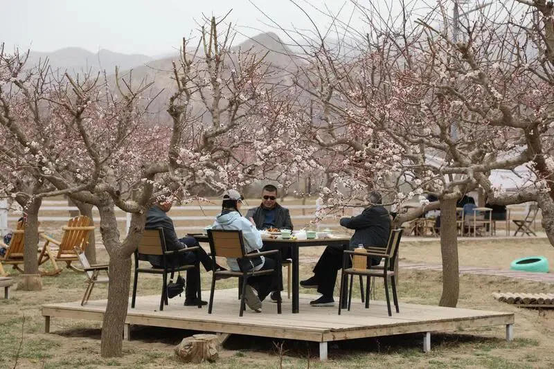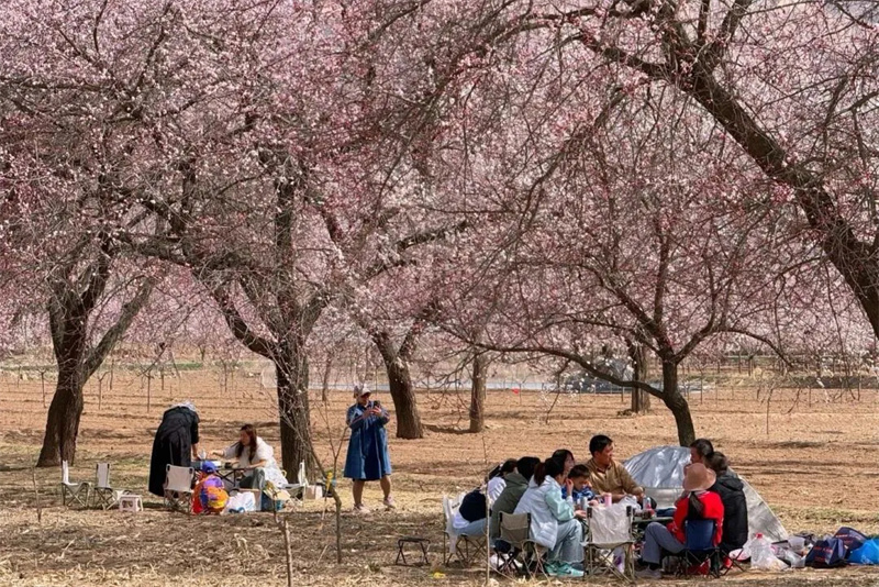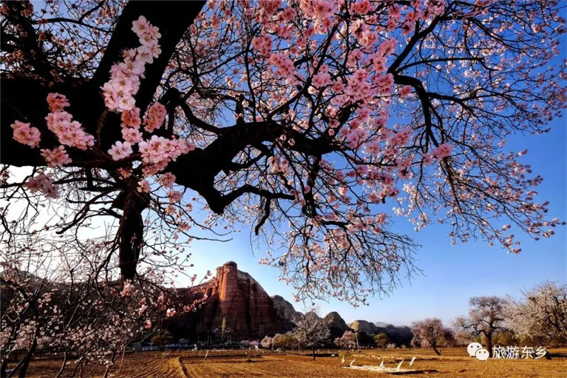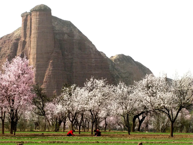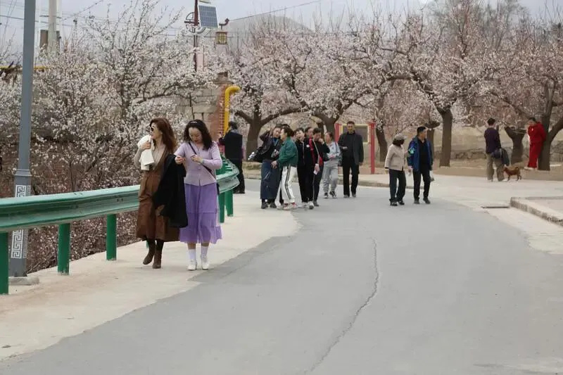 这里的杏花没有江南的婉约,带着西北高原的热烈:枝干遒劲如铜铸,花朵却开得肆意烂漫,风一吹,花瓣簌簌飘落,连空气中都裹着淡淡的甜香。当地的村民会在树下摆摊,品着盖碗茶,吃着油香,把春日的浪漫揉进了烟火气里。