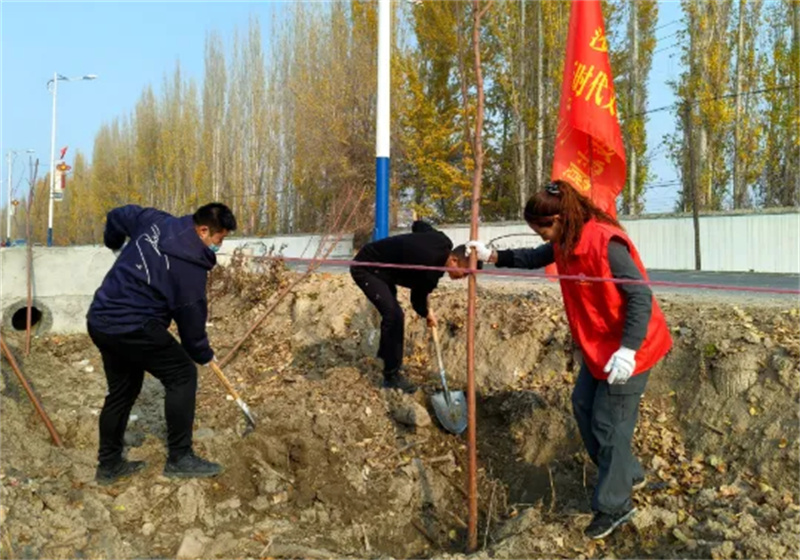 11月1日,沙湾市金沟河镇开展秋季义务植树活动,为秋日的大地增添了勃勃生机。
