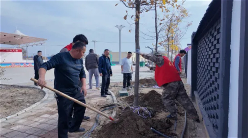 植树现场,大家热情高涨、分工协作,平整林带、卸载苗木、挥锹挖坑、扶苗正株、培土踩实、提水浇灌……默契配合间,一株株承载着希望的树苗稳稳扎根沃土。这场植树活动不仅美化了乡村生态环境,还为秋日乡村增添了盎然生机。(图文:娜仁沙)