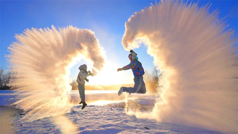 跟随鄂伦春猎民畅玩冰雪,坐上雪扒犁寻找儿时的记忆,打雪球、堆雪人、泼水成冰、雪地拔河,感受鄂伦春不一样的冬天。